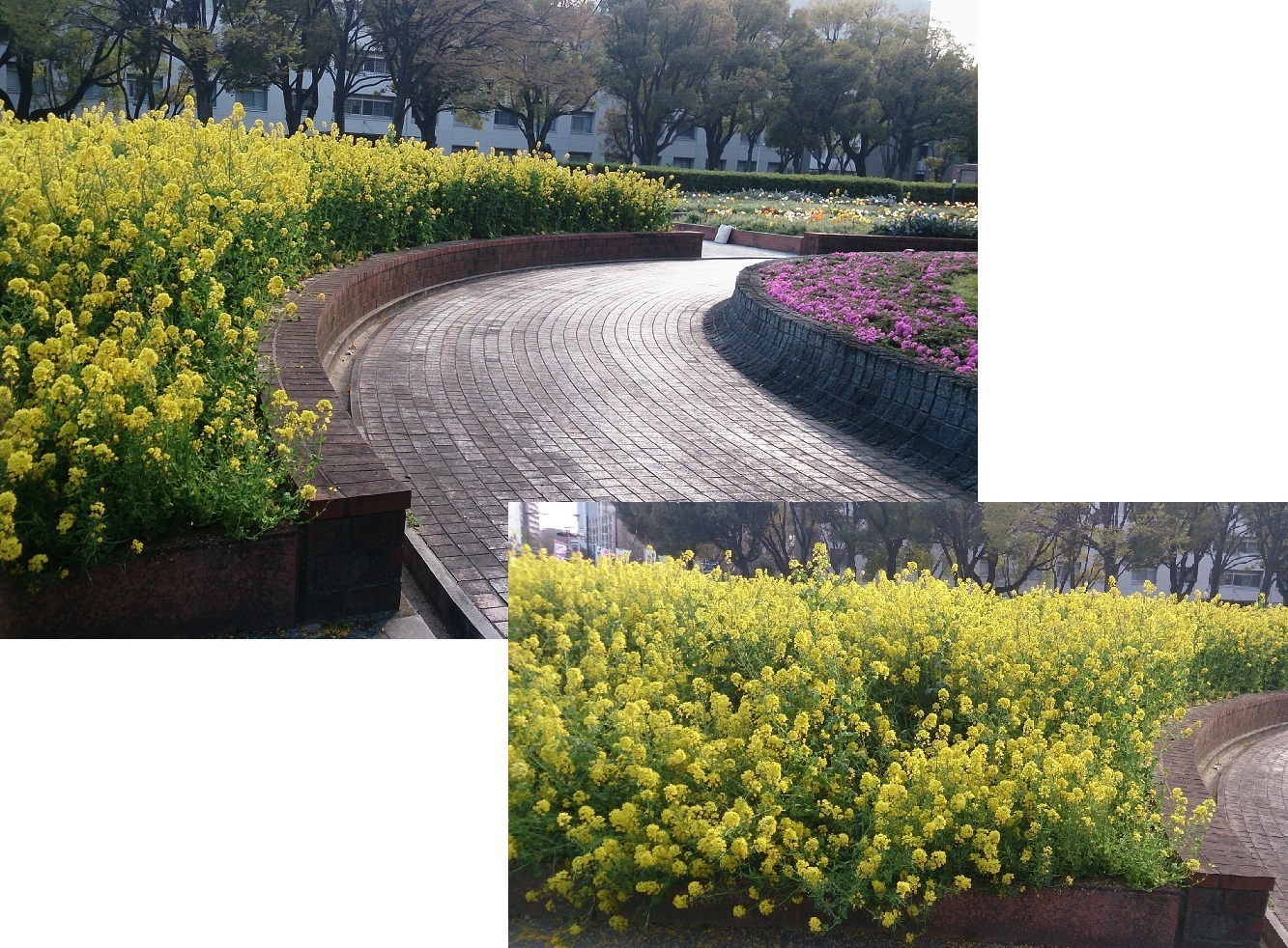 名大駅から出てすぐに見られるのは、この大量の菜の花でしょう。