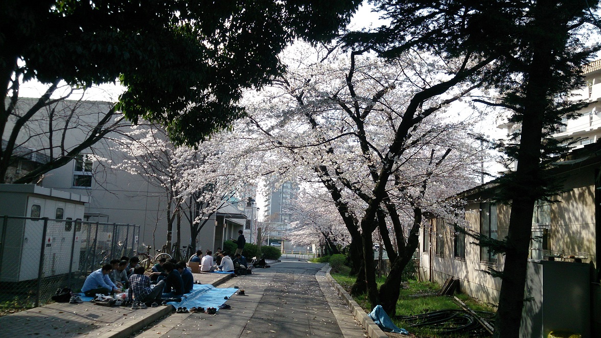 名大の中心、全学教育等前の桜はまだ満開とはいかないようでしたが、サークルの活動拠点である学生会館横のプチ桜並木では、昼間っから一升瓶を持ち込んで花見をしている団体がいました。その横でフォルクローレが演奏していたので何ともシュールでした。