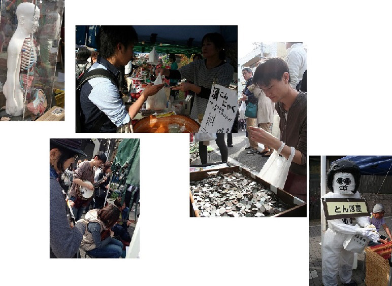 ステージ後は各々お祭りを満喫しました。ウクレレコーナーの人たちとルージュの伝言をジャムをしたり、今晩のおかずにこんにゃくを買ったり、人体模型や脈略のないおかざえもんと遭遇したり…